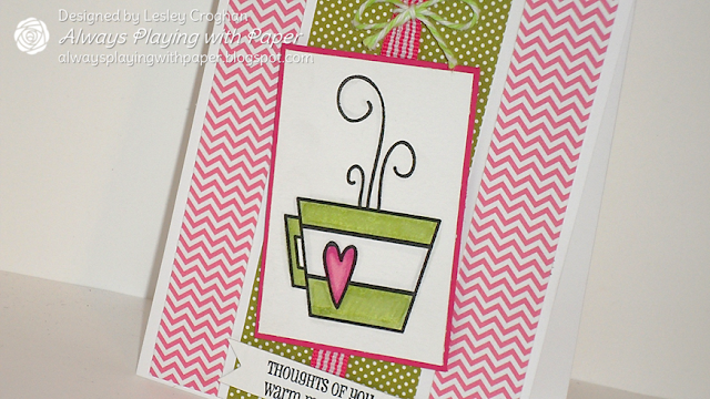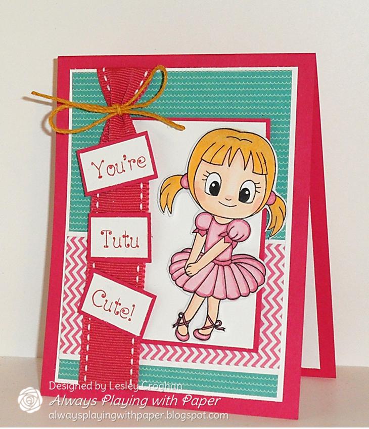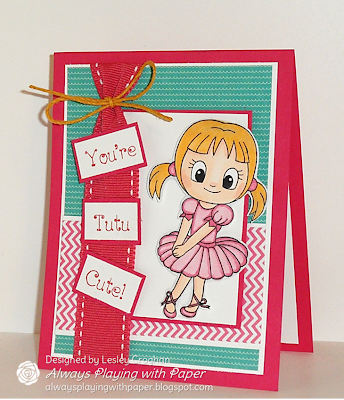I have wanted to play with Karen's Sweet Sunday Sketch for a long time! Tonight I inked up another "Clearly Besotted" stamp that I won a couple of weeks ago! It was such an awesome surprise! I used some designer paper from my stash and some brand new "Simple Stories" pattern paper called Snap Colour Vibe (I lurve this paper)! I have seen a lot of designers use the sentiment cut up in a cute way and I decided to give that a whirl when I saw the tab on the side of Karen's sketch. This sweet little girl is coloured with Copics and then I fussy cut her out, so I could make her stick out of the sketch. I turned Karen's awesome sketch on the side...thank you for the inspiration Karen!