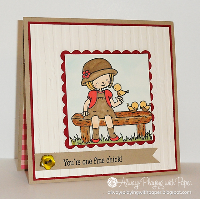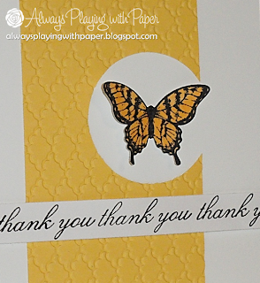 A quick opportunity to craft tonight and I had fun colouring! I seem to go through these colouring bouts and it is exciting to be inspired by a photograph and a sketch! My sketch is my interpretation of the fun sketch at Mojo Monday. Instead of a flower on the left side, I opted for a flagged sentiment. My colour choices come from the There She Goes Inspiration Challenge this week, the picture is below...it is full of Fall colours. I made this for a friend, who has been so much fun to work with!