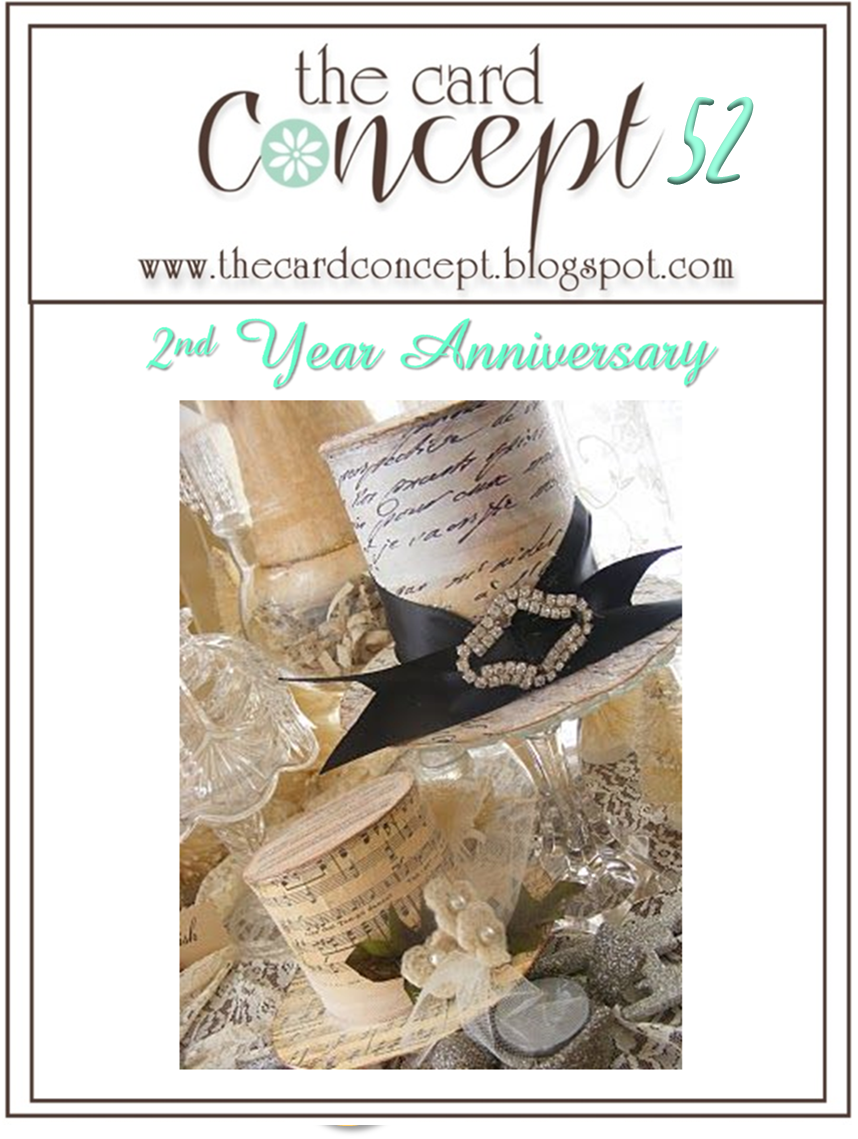 I am so excited to announce that today marks the 52nd challenge over at The Card Concept and that we are celebrating our 2nd Year Anniversary!!! To celebrate with my wonderful design team, I made a a card!