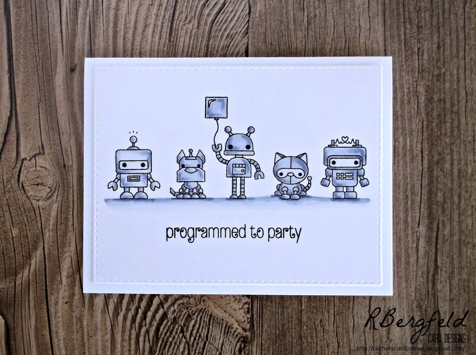 For my card, I decided to ink up a new set from The Cat's Pajamas! I love this adorable bunny! SO easy to colour and he is always doing the craziest things! I found this paper in my stash and decided to go with a monochromatic feel to my card to mimic the inspiration photo this week!
